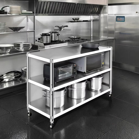 शीट धातु निर्माण के लिए 304 स्टेनलेस स्टील रसोई भंडारण रैक फर्श खड़ी बहु-परत बहु-कार्यात्मक कैबिनेट